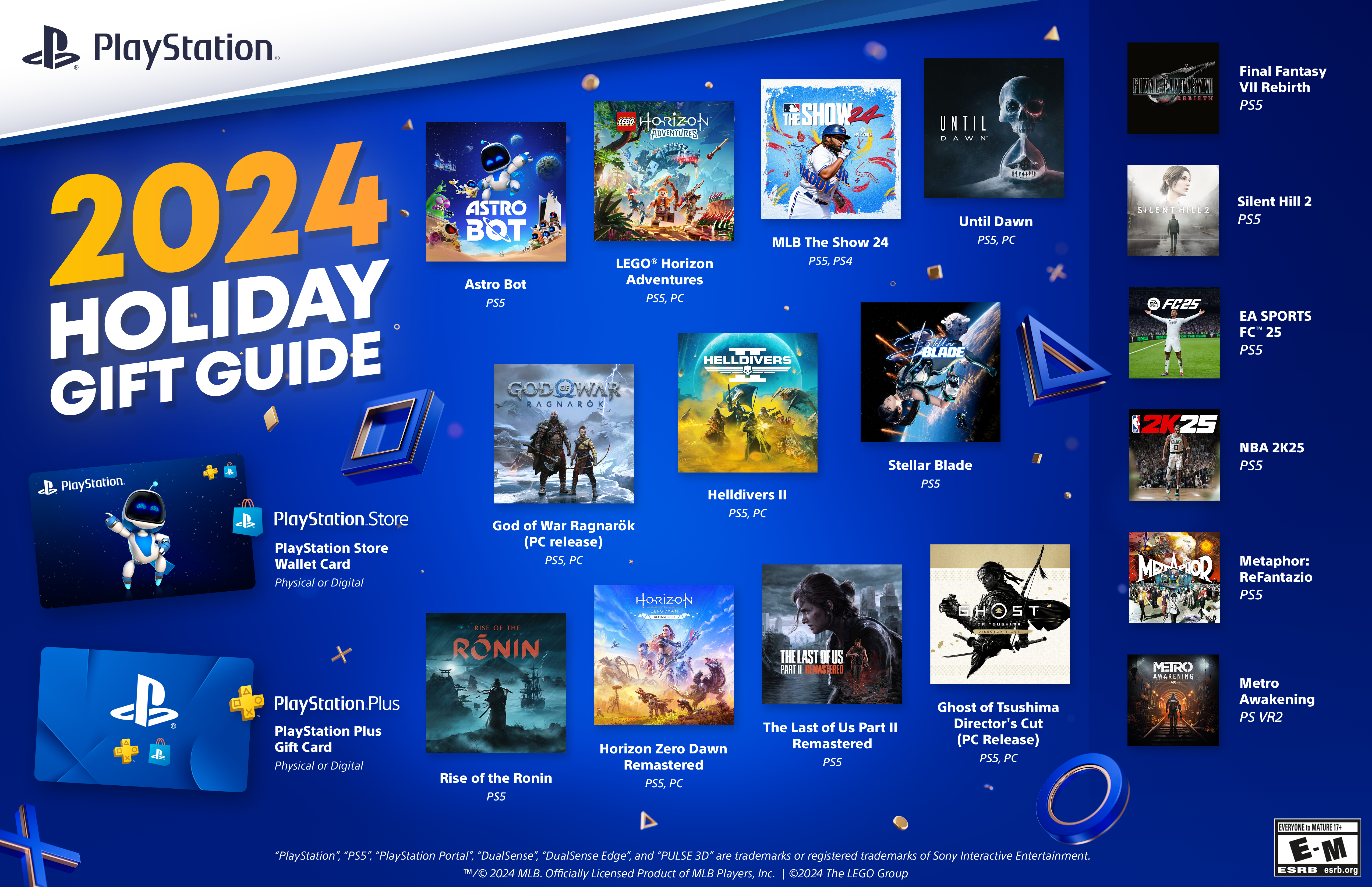 November 18, 2024, SAN MATEO, Calif. — As the holiday shopping season approaches, Sony Interactive Entertainment releases its 2024 PlayStation® Holiday Gift Guide filled with the latest range of products for gift-givers this holiday season.